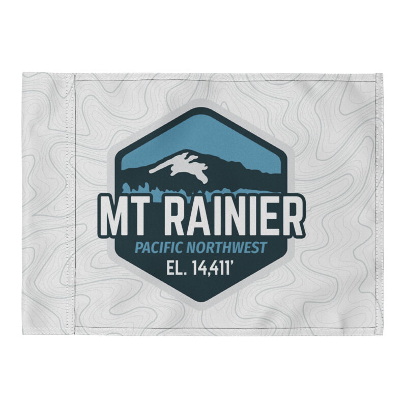 Celebrate your summit with this Mount Rainier summit flag. This lightweight, packable summit flag goes with you up the mountain for the perfect summit selfie. And it makes a great memento for after your accomplishment, to hang on your wall or frame.