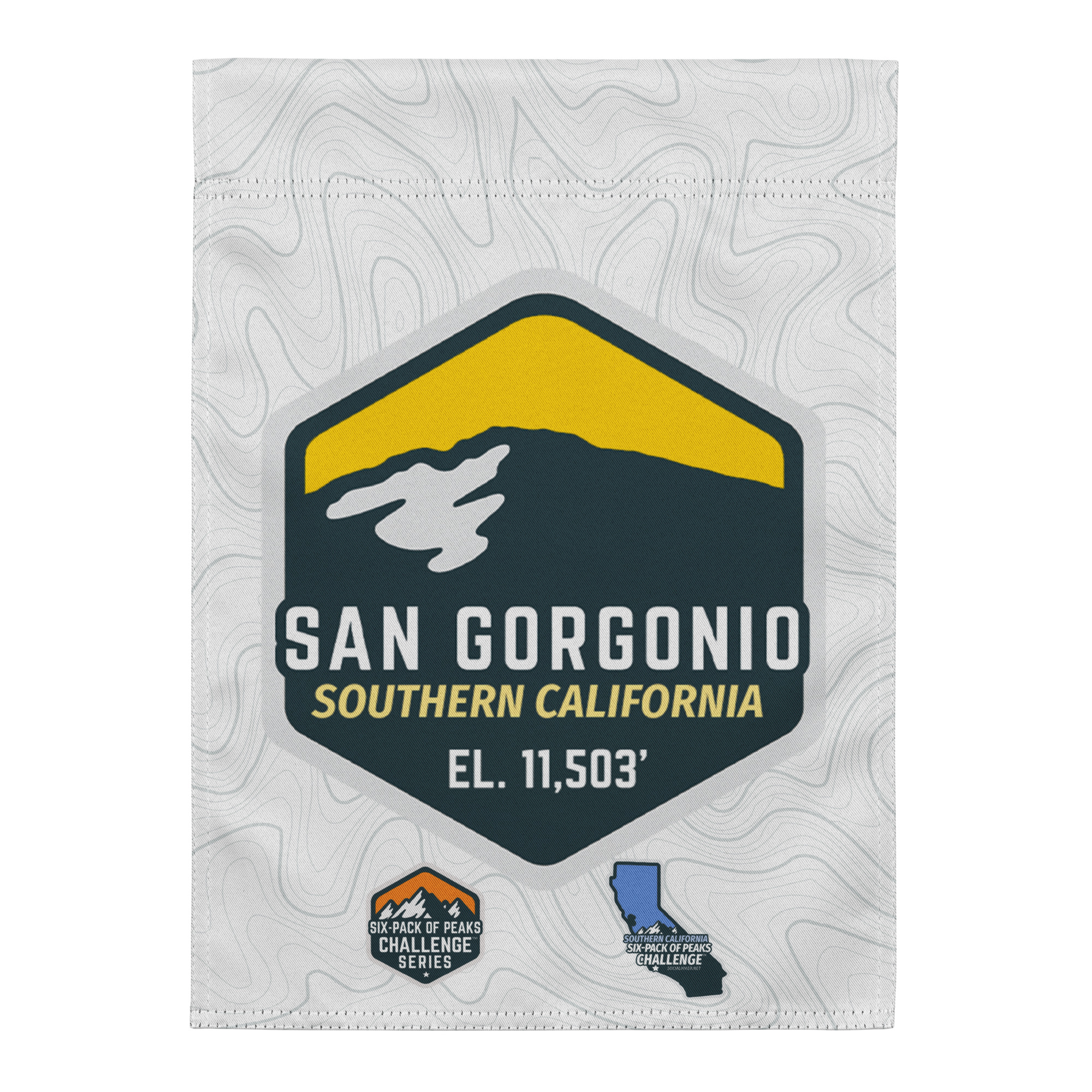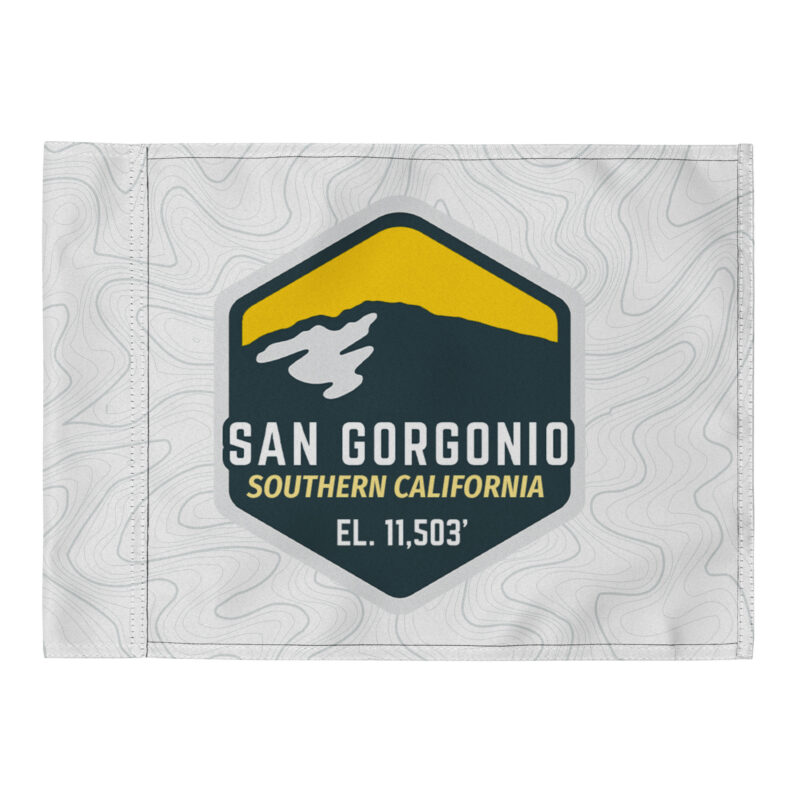 Celebrate your summit with this San Gorgonio summit flag. This lightweight, packable summit flag goes with you up the mountain for the perfect summit selfie. And it makes a great memento for after your accomplishment, to hang on your wall or frame.